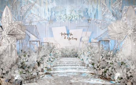 作为轻快的蓝色调,清透而现代的精致水色散发着简洁的率性和经典的耐看。 而且它是一个比较容易上手且不会踩雷的婚礼色系,而且搭配的可能性非常多。